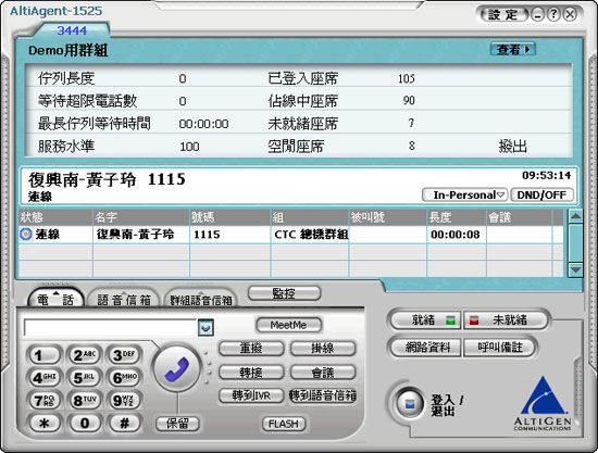 圖:AltiGen電話進線后的主畫面,即有轉接、多方會議、保留等功能鍵,達到全方位通訊。