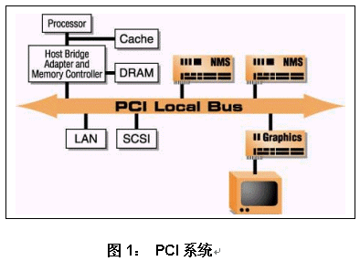 PCI(Peripheral Component Interconnect)本地總線是采用多路地址和數(shù)據(jù)線的高性能32位/64位總線。在采用NMS板卡的系統(tǒng)中,PCI總線用來(lái)在NMS板卡和主機(jī)處理器之間傳遞數(shù)據(jù)和控制信息。其它外圍附加板卡通常與NMS板卡共享總線。(參見圖1)