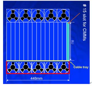 ATCA的架構主要包括以下部分:正面插槽,RTM,PEM,背板,CMMs,散熱系統。(參考圖一與圖二)