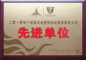 誠伯榮獲廣州亞運會亞殘運會票務中心“先進單位”稱號