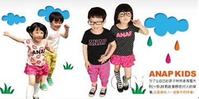 除了衣服質(zhì)感舒適,ANAP KIDS以款式流行、設(shè)計CUTE的市場定位也贏得 不少青睞者的追捧。更有小物件、配飾等多類商品,滿足了喜歡時尚、裝扮的母親們想讓自己孩子穿得和其他人與眾不同衣服的需求。繼承了ANAP傳統(tǒng)的ANAP KIDS是一個非!氨挤拧、“充滿活力”的品牌,致力于協(xié)助父母給予最可愛的他(她)最安全、最舒適的呵護(hù),將潮流、關(guān)愛、成長的生活觀念傳遞到每個家庭,讓所有3-6歲兒童共享同一份快樂。