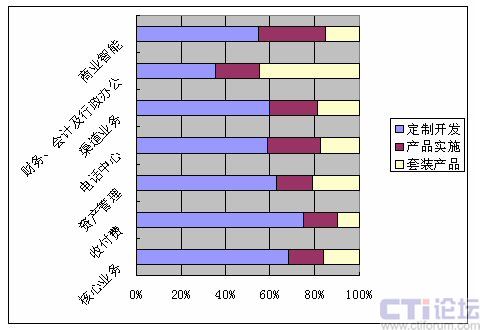 第三種策略是產(chǎn)品實(shí)施方式,即在產(chǎn)品化信息系統(tǒng)基礎(chǔ)上通過對(duì)企業(yè)業(yè)務(wù)現(xiàn)狀的分析規(guī)劃為企業(yè)定制滿足業(yè)務(wù)需求的信息系統(tǒng),該種方式將企業(yè)業(yè)務(wù)規(guī)劃與信息化過程相統(tǒng)一,縮短信息化周期,降低信息化風(fēng)險(xiǎn),對(duì)于未來企業(yè)業(yè)務(wù)的發(fā)展能夠通過保護(hù)既往投資的方式靈活應(yīng)對(duì)。目前這三種不同信息化策略在保險(xiǎn)企業(yè)各業(yè)務(wù)單元應(yīng)用的情況如下圖所示。