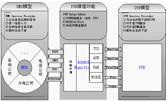 。ㄈ┩ㄟ^電話獲取信息的方式伴隨Internet的發(fā)展而改變. WEB提取信息簡單,快捷.直觀.這使得我們建設WEB系統(tǒng)提供機會. 使用我們IVR Service的企業(yè)都可以使用我們的WEB服務,這樣我們不僅僅做IVR服務,我們還可以做UMS服務提供商(UMS Service Provider)