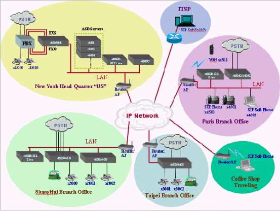 MOSA的SIP IP-PBX是一個完整的商用交換機系統(tǒng),能提供企業(yè)完整的通信服務(wù),因應(yīng)各種不同接口的連結(jié)需求,例如公眾電信系統(tǒng)(PSTN)、SIP服務(wù)商、傳真機、電話機、語音信箱、SIP IP Phone、SIP Soft-phone、Wifi-Phone以及各種SIP終端設(shè)備等等,MOSA的SIP IP-PBX提供模塊化的接口連接設(shè)備,每一種接口連接設(shè)備均配備有以太網(wǎng)絡(luò)接口,可以透過IP網(wǎng)絡(luò)相互連結(jié),使得各分公司之間通信零距離。MOSA SIP IP-PBX除了解決基本的接口連接外,也提供各式各樣的應(yīng)用服務(wù)服務(wù)器(Application Service Devices),增進整體系統(tǒng)的功能,譬如:網(wǎng)絡(luò)型電話會議,網(wǎng)絡(luò)型廣播,移動辦公功能等。
