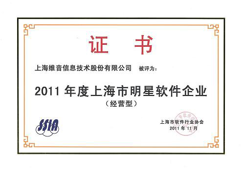 維音再次榮獲“2011年度上海市明星軟件企業(yè)”