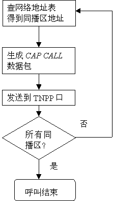 本地呼叫登記了同播功能的本地機(jī)時(shí), 自動(dòng)臺(tái)通過PCM數(shù)字中繼, 從MFC信號(hào)中取到BP機(jī)號(hào)及主叫電話號(hào)碼, 或從用戶DTMF撥號(hào)中得到信息碼,形成發(fā)呼串送到發(fā)呼工作站,由發(fā)呼工作站根據(jù)同播區(qū)號(hào),往所有的自動(dòng)臺(tái)發(fā)CAP CALL,后面的呼叫過程就由同播地自動(dòng)臺(tái)來完成。同播區(qū)可以為包括本地區(qū)的多個(gè)區(qū)。下圖中TNPP口可以為本地TNPP端口或聯(lián)網(wǎng)TNPP端口。