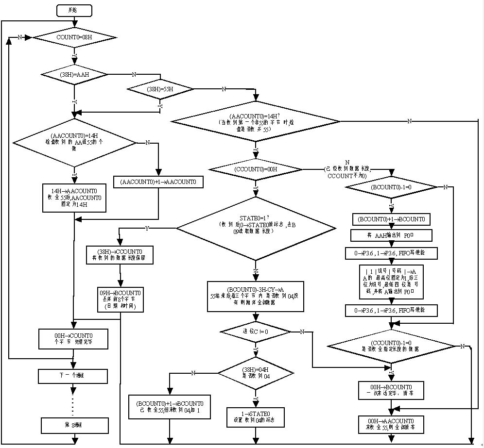 。3)在連續(xù)收到至少20個(gè)55h數(shù)據(jù)(即通道占用信號(hào))后,程序才往下執(zhí)行,否則表明此次FSK數(shù)據(jù)出錯(cuò),應(yīng)退出本次收號(hào)。