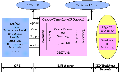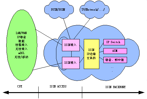 BACKBONE(骨干網)、ISIN ACCESS(接入網)和ISIN CPE(用戶端系統(tǒng)設備),可以構成向用戶提供語音、數(shù)據(jù)、圖像等綜合業(yè)務的統(tǒng)一的ISIN網絡體系。