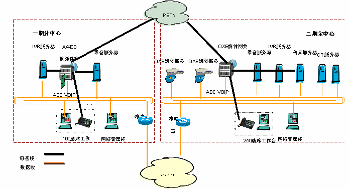 基礎(chǔ)語音系統(tǒng)采用阿爾卡特OmniPCX Enterprise語音通信平臺,它采用分布式的語音體系架構(gòu),完全融合IP技術(shù),并可集成傳統(tǒng)的TDM語音。OmniPCX Enterprise提供開放的標(biāo)準(zhǔn)和靈活的擴(kuò)展能力,并提供99.999%的高可靠性。讓用戶靈活的配置其座席的地理位置和通信方式,并保證系統(tǒng)運(yùn)行安全可靠。OmniPCX Enterprise交換機(jī)(二期)計(jì)劃采用Appliance Server呼叫服務(wù)器雙備份結(jié)構(gòu),提供RSI接口與GENESYS相連,以及并線錄音系統(tǒng)接口。今后,項(xiàng)目還將采用先進(jìn)的阿爾卡特-My Phone IP WEB軟電話,提高內(nèi)部通信能力,優(yōu)化業(yè)務(wù)流程。