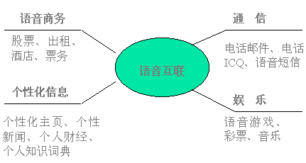 在中國,電話有著最廣泛的用戶群;追求方便時尚,希望使用互聯(lián)網(wǎng)信息、郵件而不懂或不熟悉鍵盤操作的用戶占4/5;語音互聯(lián)網(wǎng)是電話網(wǎng)與互聯(lián)網(wǎng)的完美結(jié)合,通過語音互聯(lián),普通電話用戶用自然語言對話的方式即可獲取互聯(lián)網(wǎng)的主要服務,滿足用戶任何時間、任何地點、任何設備獲取信息的需求。在美國、日本,語音互聯(lián)已成為簡易終端接入互聯(lián)網(wǎng)的主要方式之一。