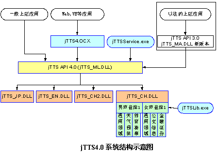 新版本的jTTS_MA.DLL是為了保持向下兼容,它完全繼承原有的jTTS API 3.0的所有函數(shù),不增加也不刪減任何函數(shù)。因此,它也僅能完成以前版本的功能(但可以利用最新的中文引擎,提高聲音質(zhì)量),提供它的目的僅僅在于用戶能夠不改動原有程序繼續(xù)運行,但如果希望使用新的功能,必須使用jTTS_ML.DLL,利用新的API進行開發(fā)。