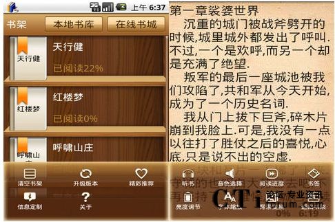 只要將捷通華聲出品的聽書軟件安裝在Android1.6以上系統(tǒng)的智能手機(jī)中,即可隨心暢讀,捷通聽書是捷通華聲人機(jī)交互(HCI)技術(shù)的創(chuàng)新之作,它運(yùn)用嵌入式語音合成技術(shù),無需人工進(jìn)行預(yù)置錄音,無論什么文體,都可進(jìn)行順暢的海量閱讀,這樣的海量閱讀并不會給手機(jī)的存儲空間帶來負(fù)擔(dān),現(xiàn)在就可在官網(wǎng)中http://www.hcicloud.com/xiazai.asp?id=2&classtitle=手機(jī)伴侶&clid=3 下載捷通TTS組件,只要電子書的格式為純文本文件TXT格式,便可順利進(jìn)行語音朗讀。您可以選擇男聲、女聲和寶寶聲,音質(zhì)清晰可媲美真人發(fā)聲,聽書已不再成為難事。捷通聽書軟件外觀整體設(shè)計古樸典雅,仿佛真能聞到書香的氣息,這樣的視聽氛圍會立刻帶你進(jìn)入到聽書的境界中。獨(dú)特的翻頁模式更具人性化的設(shè)計,讓人機(jī)交互更像真正意義上的翻頁讀書,無論是聽書,還是看書,都給人帶來美好的體驗。另外,捷通華聲的語音合成技術(shù)還可提供多種音色的備選方案,可根據(jù)用戶的需求進(jìn)行選用,同時支持英語、日語、俄語、德語、意大利語等多個語種的語音合成技術(shù),為用戶提供真正多方位的服務(wù)。近日,捷通聽書還在BTV《在線E起來》欄目中精彩亮相,節(jié)目中的多項測評使這款軟件表現(xiàn)不俗,捷通聽書軟件再次成為智能手機(jī)軟件應(yīng)用中的新亮點(diǎn)。