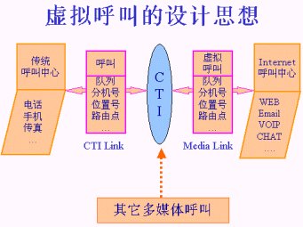 由于有了這種“虛擬呼叫”的技術(shù),CTI平臺才能夠?qū)嶋H的電話呼叫和來自Internet的訪問進(jìn)行統(tǒng)一的處理。這是一種完整意義上的將傳統(tǒng)呼叫與Internet訪問完美結(jié)合的設(shè)計思想。