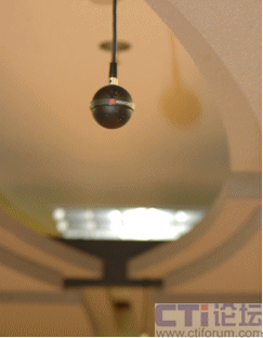 至關(guān)重要的麥克風(fēng)并沒有放在桌子上,而是像小行星一樣巧妙地懸掛于天花,徹底改變了人們對著麥克風(fēng)發(fā)言的習(xí)慣,讓溝通更趨向于真實(shí)會議環(huán)境;可別小看這“高高在上”的麥克風(fēng),它的360度全向立體聲拾音能力,震撼了我們在座的每一個人,寬帶音頻技術(shù)已經(jīng)到了如斯的地步。