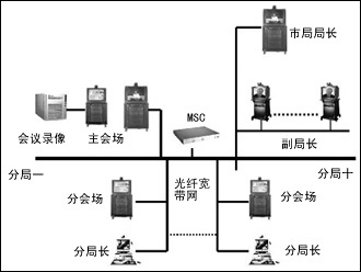 在每個(gè)分局和信息中心機(jī)房設(shè)置分會場,實(shí)現(xiàn)網(wǎng)絡(luò)視頻會議和遠(yuǎn)程技術(shù)支持。分會場的會議終端設(shè)備選用VCON的會議室型柜式終端MediaConnect