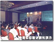 黃經理胸有成竹地站在臺上娓娓道來,先是從一段流暢的Flash講解開始了模擬演示,闡述了文正明iUnicenter的四種構筑方式,從最簡單的證券行業(yè)IP長途電話解決方案開始我們就可以運用iUnicenter技術,到最經濟的最小化iUnicenter客戶服務中心構建,以及在已有的基于交換機的客戶服務中心上的升級,最后直到完全功能的多功能iUnicenter客戶服務中心的構建都可以運用文正明的iUnicenter客戶服務中心技術來完成,這是一整套從下至上的垂直化的經濟、方便的客戶服務中心解決途徑。
