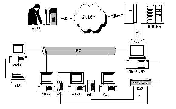 148法律咨詢臺(tái)是司法部門(mén)為廣大群眾提供的一項(xiàng)法律電話咨詢服務(wù)。148法律咨詢系統(tǒng)利用先進(jìn)的計(jì)算機(jī)電話語(yǔ)音系統(tǒng)集成技術(shù),實(shí)現(xiàn)148熱線電話在話務(wù)員處理座席上的排隊(duì),使打入148熱線的用戶獲得最快、最好的服務(wù)。系統(tǒng)內(nèi)置自動(dòng)語(yǔ)音服務(wù)模塊,使148法律咨詢系統(tǒng)同時(shí)具有自動(dòng)語(yǔ)音服務(wù)和人工座席服務(wù)。