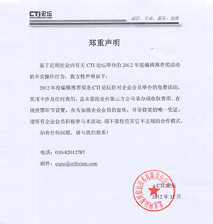 3. 充分利用CTI論壇及合作媒體的優(yōu)勢(shì),廣泛聽(tīng)取來(lái)自業(yè)內(nèi)人士和廣大用戶(hù)的意見(jiàn)和建議。