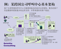 ---- 圖示是一個(gè)由德勤咨詢公司為一全球性客戶提出的呼叫中心建議,呼叫中心經(jīng)常需要這樣復(fù)雜的一個(gè)技術(shù)平臺和基礎(chǔ)支持才可能實(shí)現(xiàn)快速的來電和去電處理。
