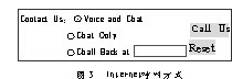 客戶服務中心系統(tǒng)提供的Internet服務方式包括:VoIP(即Internet上的語音交談)、Text Chat(文本方式的交談)、PSTN Call Back(電話回呼)、E-mail 以及伴隨瀏覽和網頁共享等(圖3)。