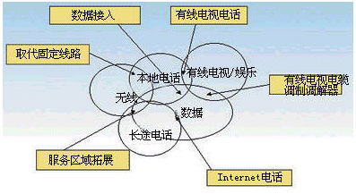 數(shù)據(jù)服務(wù)同本地電話服務(wù)的融合,是不來最重要的融合趨勢之一,其主要體現(xiàn)在通過本地電話可以解決數(shù)據(jù)業(yè)務(wù)的接入問題,可以提供窄帶或?qū)拵У慕尤肽芰ΑM瑫r,可以為Internet服務(wù),如電子郵件服務(wù)同電話話音服務(wù)結(jié)合起來創(chuàng)造條件。一種未來的發(fā)展方向就是利用電話來接收電子郵件同時可以用電子郵件的方式閱讀語言信箱中的留言!奥犽娮余]件,看語言信箱”是對這種融合服務(wù)的最好描述。而數(shù)據(jù)業(yè)務(wù)同長途電話業(yè)務(wù)的融合集中于通過VoIP技術(shù)提供長途電話服務(wù),競爭收入最大的電信市場。數(shù)據(jù)服務(wù)同有線電視娛樂服務(wù)的融合主要體現(xiàn)在以Cable Modem做為數(shù)據(jù)接入手段和視頻點播這樣的娛樂服務(wù)。通過Cable Modem,有線電視網(wǎng)也可以提供本地電話和長途電話接入業(yè)務(wù),象AT&T和TCI 及MediaOne 正在進行的電話業(yè)務(wù)實驗。而寬帶的數(shù)據(jù)接入則為數(shù)據(jù)服務(wù)的寬帶化提供了條件。