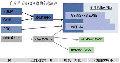 移動多媒體服務(wù)需要網(wǎng)絡(luò)具有更高的速度和更大的容量。蘇敏芬詳細(xì)描述了網(wǎng)絡(luò)由2G向3G演進(jìn)的過程(如圖1)。據(jù)介紹,2G的技術(shù)基于多種標(biāo)準(zhǔn),包括TDMA、GSM、PDC和cdmaOne。其中,TDMA是美國采用最廣泛的2G技術(shù),但現(xiàn)在,美國的運(yùn)營商已經(jīng)越來越多地開始采用GSMc以及GPRS、EDGE等基于GSM的技術(shù);GSM存在于全球70%的運(yùn)營商網(wǎng)絡(luò),這種全球化技術(shù)不僅能夠給最終用戶提供服務(wù)、漫游以及通信質(zhì)量方面的很多好處,它還可以節(jié)省運(yùn)營商的投資,在從GSM向WCDMA演進(jìn)的過程中,也會為運(yùn)營商帶來諸多裨益。PDC是在日本被廣泛采用的一種技術(shù)標(biāo)準(zhǔn),但現(xiàn)在,WCDMA技術(shù)也正在逐漸被日本運(yùn)營商采用。cdmaOne(即IS-95)在韓國得到了比較多的應(yīng)用,韓國的運(yùn)營商面臨兩條發(fā)展道路,即從cdmaOne向WCDMA發(fā)展或向CDMA2000發(fā)展。中國主要采用GSM技術(shù),但也有小部分網(wǎng)絡(luò)采用了cdmaOne技術(shù)。
