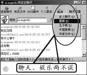 5、夢(mèng)幻尋呼(DICO):郵件群發(fā)功能;豐富的插件使得我們可以聊天娛樂(lè)兩不誤(如圖6);方便清晰的語(yǔ)音聊天功能——能夠穿透防火墻,達(dá)到電話(huà)的音質(zhì)效果;個(gè)人Web服務(wù)——可以把你的個(gè)人電腦輕松設(shè)置成一個(gè)Internet