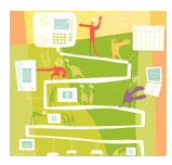 俗話說,多多益善。但是當(dāng)談到多個網(wǎng)絡(luò)的管理或費用承擔(dān)等問題時,恐怕大多數(shù)人都會同意一個網(wǎng)絡(luò)要比兩個或者三個更為經(jīng)濟有效。這其實是很容易理解的----當(dāng)數(shù)據(jù),語音和視頻能夠利用同一個網(wǎng)絡(luò)進行傳輸?shù)脑挘有什么必要在每個桌子拖上一大堆電線,讓公司維護三五套網(wǎng)絡(luò)硬件,還要養(yǎng)活好幾組技術(shù)支持隊伍呢?更何況一個綜合性的網(wǎng)絡(luò)還能集中精力為每個用戶提供更好的服務(wù)?于是,IP電話應(yīng)運而生,這種技術(shù)讓很多公司有機會利用現(xiàn)有的網(wǎng)絡(luò)框架贏得更大的利益。