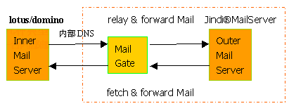 這種方案在有一定規(guī)模的企業(yè)比較典型,內(nèi)部網(wǎng)為Lotus/domino或Exchange的群件系統(tǒng),為內(nèi)部用戶提供smtp, pop3 服務(wù),一般為內(nèi)部IP地址和內(nèi)部帳戶,不具有直接發(fā)送外部郵件的功能。如果要發(fā)送外部郵件,需要配置smtp