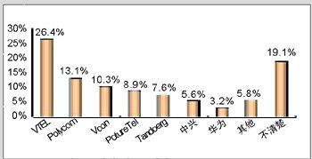 各品牌的認(rèn)知度與其市場銷售情況息息相關(guān)。例如,VTEL是最早進(jìn)入中國市場的視頻會議廠商,并在相當(dāng)長的時(shí)期內(nèi)占據(jù)市場領(lǐng)先地位,取得顯著的品牌認(rèn)知度是有其廣泛用戶基礎(chǔ)作為支撐的;Polycom雖然從1998年才開始進(jìn)軍中國市場,但在基于IP的視頻會議系統(tǒng)的市場爭奪中取得較好的成績;PictureTel已經(jīng)被Polycom收購,品牌認(rèn)知度也相對較低;而國內(nèi)品牌中興、華為剛剛起步,也很難達(dá)到較高的認(rèn)知度。