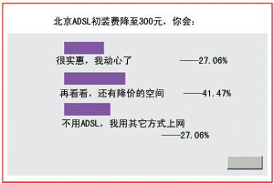 2002年12月,中國網(wǎng)通北京通信公司發(fā)起了一次降價活動,先是將原定今年12月20日到期的512k ADSL上網(wǎng)費的半價優(yōu)惠向后延續(xù)半年期限,緊接著,ADSL初裝費從最初的1300元降至300元,降幅達千元,動作之大、降幅之高,令業(yè)界嘩然。不難發(fā)現(xiàn),DSL不僅要延續(xù)原有的市場分額,還要搶占Cable Modem與以太網(wǎng)的半壁江山|