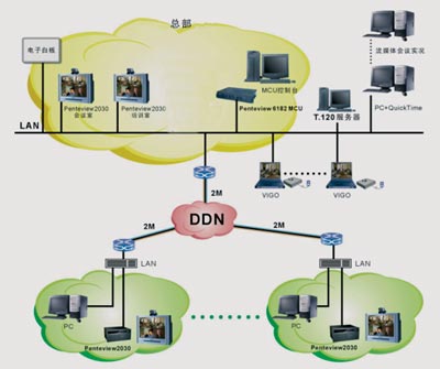 在上述網(wǎng)絡(luò)結(jié)構(gòu)中,還可以方便地繼續(xù)發(fā)展第三級視頻會(huì)議子網(wǎng)。正如前面提到的,這個(gè)第三級子網(wǎng)中,完全可以使用普通視頻會(huì)議終端,以節(jié)約大量費(fèi)用。