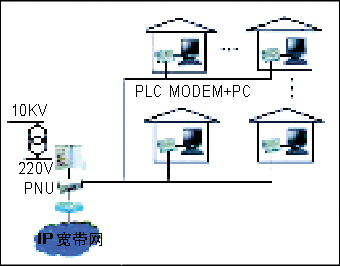 利用普通220V電源線(xiàn)作載體,將IP寬帶信號(hào)接入每個(gè)家庭的PLC(Power Line Communication)網(wǎng)絡(luò)正在進(jìn)入小區(qū)/樓宇市場(chǎng)。它是通過(guò)電力線(xiàn)網(wǎng)絡(luò)單元(PNU)將寬帶接入信號(hào)經(jīng)正交頻分復(fù)用(OFDM)調(diào)制、匯入小區(qū)/樓宇電力變壓器用戶(hù)輸出線(xiàn)上,再經(jīng)電源線(xiàn)送到各家各戶(hù)。PC、IP Phone、Fax設(shè)備均可通過(guò)房間內(nèi)部的電源插座寬帶接入Internet。