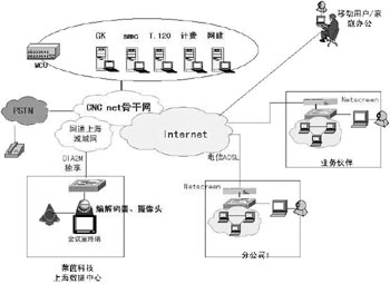 對(duì)于規(guī)模小的分公司,沿用原來的因特網(wǎng)專線, 作為視頻系統(tǒng)的接入。