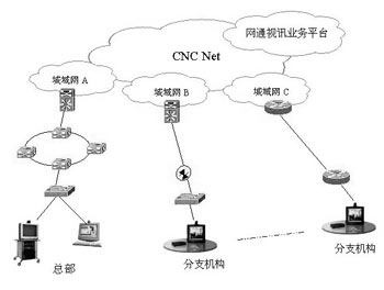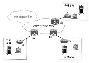 網通視訊業(yè)務作為應用層的服務,可以通過客戶的分支機構之間由MPLS VPN組成的專網來承載視頻通信,或者通過接入網通的視頻VPN來使用視頻通信服務。