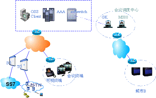 (4)會議業(yè)務(wù)管理平臺(MS80):中興通訊開發(fā)地會議管理平臺,完成會議管理、會議控制等功能,以及提供WEB服務(wù)等。