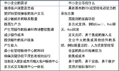 當(dāng)中小企業(yè)從“非正式”轉(zhuǎn)向“正式”客戶中心操作時(shí),他們需要與大型企業(yè)相同的客戶中心能力。對(duì)于這些企業(yè),合適的解決方案必須要解決一個(gè)重要的業(yè)務(wù)問題,例如以易于客戶聯(lián)絡(luò)的各種方式交流,使其成為真正的客戶中心。也許更重要的是,實(shí)現(xiàn)成本必須處于控制之下且管理良好。中小企業(yè)期望的是功能完善的客戶聯(lián)絡(luò)中心,但是價(jià)格必須能夠承擔(dān)得起,低花費(fèi),低培訓(xùn)成本,短期內(nèi)即可實(shí)現(xiàn)。
