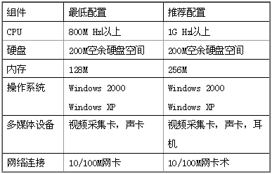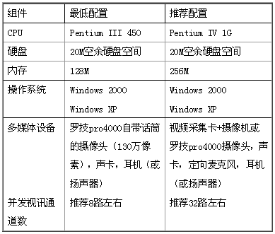 1、配置一臺服務器安裝WeCO 服務器軟件,服務器需要有靜態(tài)IP 地址,并且可以位于防火墻之后。視頻會議服務器的系統(tǒng)需求如下表所示: