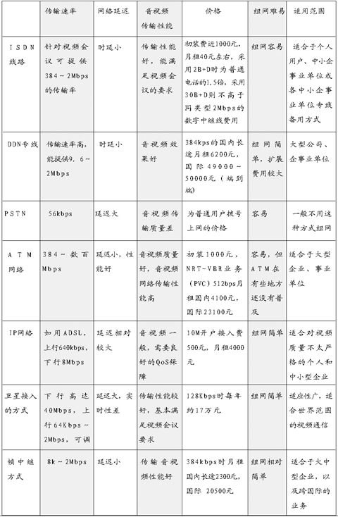 對于通信量較少、通信時(shí)間較短的用戶,選用ISDN的費(fèi)用遠(yuǎn)低于租用DDN專線或幀中繼電路的費(fèi)用,而且具有速率高、投資少、聯(lián)網(wǎng)方便等特點(diǎn),能滿足基本會議電視系統(tǒng)的應(yīng)用要求。但全國ISDN網(wǎng)絡(luò)還處在不斷升級階段,可靠性和穩(wěn)定性相對于專線方式還有不足。