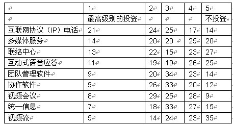 許多早期接受融合網(wǎng)絡(luò)的主要動因是為了減少語音成本。語音電話(VOIP)技術(shù)使融合網(wǎng)絡(luò)環(huán)境中的這一切都成為可能。語音電話實(shí)現(xiàn)了互聯(lián)網(wǎng)上的呼叫路由,繞過公共交換電話網(wǎng)絡(luò)(PSTN)進(jìn)行傳輸,從而避免了昂貴的費(fèi)用。我們的調(diào)查顯示,大部分公司將會在中短期內(nèi)把投資重點(diǎn)集中在融合網(wǎng)絡(luò)應(yīng)用上。