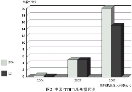 FTTH建設(shè)在中國(guó)已經(jīng)開(kāi)始啟動(dòng),部分運(yùn)營(yíng)商已經(jīng)試用了一些廠商設(shè)備(例如烽火網(wǎng)絡(luò)的EPON設(shè)備)進(jìn)行試點(diǎn)工程的建設(shè),數(shù)年內(nèi),運(yùn)營(yíng)商將會(huì)進(jìn)行選型工作,進(jìn)行小批量的建設(shè)。隨著設(shè)備價(jià)格的逐步下降,建設(shè)量將會(huì)逐步加大,預(yù)計(jì)在2至3年內(nèi)成為主要的接入手段。部分駐地運(yùn)營(yíng)商以及房地產(chǎn)商也開(kāi)始對(duì)FTTH技術(shù)產(chǎn)生濃厚的興趣,積極與運(yùn)營(yíng)商合作開(kāi)發(fā)FTTH建設(shè)。