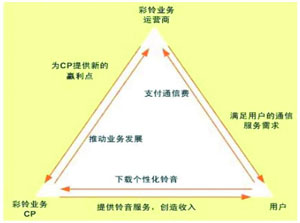 如今,韓國(guó)的彩鈴業(yè)務(wù)已遍地開(kāi)花,超過(guò)50%的手機(jī)用戶在使用彩鈴服務(wù),運(yùn)營(yíng)商因此每月能獲得1500萬(wàn)美元的收益。小彩鈴喚來(lái)了大市場(chǎng)。個(gè)人用戶無(wú)需購(gòu)買昂貴的終端就可通過(guò)彩鈴業(yè)務(wù)向外界傳遞個(gè)性和情感。商業(yè)用戶將回鈴音設(shè)置成廣告/宣傳語(yǔ),使客戶在與企業(yè)員工交流的同時(shí)接收企業(yè)的相關(guān)信息,例如企業(yè)文化、產(chǎn)品、銷售信息等,直接或間接地增加了企業(yè)的市場(chǎng)機(jī)會(huì)。彩鈴業(yè)務(wù)為運(yùn)營(yíng)商帶來(lái)了直接的經(jīng)濟(jì)收益,也帶來(lái)了特征用戶群,在語(yǔ)音增值業(yè)務(wù)中實(shí)現(xiàn)了產(chǎn)業(yè)鏈合作。同時(shí),運(yùn)營(yíng)商通過(guò)對(duì)特征用戶群的研究分析發(fā)現(xiàn)了未來(lái)商機(jī),并通過(guò)在語(yǔ)音增值業(yè)務(wù)產(chǎn)業(yè)鏈中引入ICP/ISP達(dá)到了資源的有效利用。