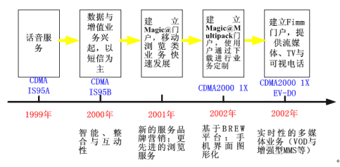 通過(guò)與手機(jī)芯片廠商密切合作并依靠韓國(guó)終端廠商較強(qiáng)的制造能力,KTF較早地解決了CDMA2000 1X手機(jī)與EV-DO手機(jī)的基本性能問(wèn)題(性能對(duì)比見(jiàn)表3),不僅抵消了用戶(hù)的使用顧慮,而且也為不斷推出新的高速數(shù)據(jù)與增值業(yè)務(wù)奠定了較好的終端應(yīng)用基礎(chǔ)。
