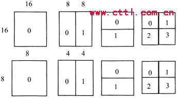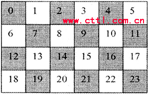 如圖3所示,陰影部分宏塊屬于片組0,白色部分屬于片組1。假設片組O在傳輸過程中丟失,由于丟失宏塊的相鄰宏塊都屬于片組1,這樣差錯恢復工具就會有更多的可利用信息來恢復丟失片的數(shù)據(jù)。