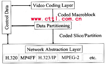 為了方便地在各種系統(tǒng)中靈活有效的應用H.264,H.264編解碼系統(tǒng)(見圖2)定義了視頻編碼層VCL和網(wǎng)絡提取層NAL。其中,VCL用于視頻編解碼,包括運動補償,變換編碼和熵編碼等單元,NAL用于采用統(tǒng)一的格式對VCL視頻數(shù)據(jù)的進行封裝打包。