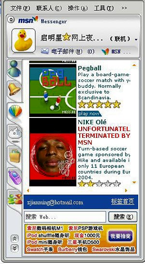 3) 拼接代替加強,F有應用的簡單決定了IM軟件本身的簡單,因此IM本身變得不受關注,廠商所作的大多是功能拼接,例如MSN加強聯網游戲,QQ傍上移動。甚至可以認為,IM本身已經被置于次要位置。