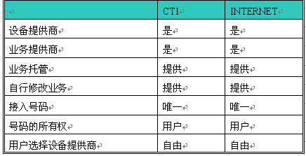 從表格來(lái)看,CTI和INTERNET在應(yīng)用方面是完全、類(lèi)似相同的,具體的方法如下: