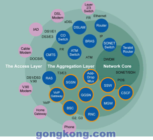 ATCA正在被廣泛應用于無線網(wǎng),見圖2中橙色園環(huán)部分,這是由市場對成本效益,快速部署方案的需求驅(qū)動的。服務提供商和TEM均認識到:用戶愿意為3G網(wǎng)絡的先進功能所付出的只能是少量的附加費,因此從2G/2.5G向3G轉(zhuǎn)換必須以盡可能低的成本和盡可能靈活的方案來實施,許多TEM已經(jīng)將ATCA看成滿足快速發(fā)展的無線市場需求的唯一技術(shù)。若基于雙星千兆以太網(wǎng)交換互連,ATCA的性能已經(jīng)很好的滿足無線網(wǎng)要求,因為這些網(wǎng)絡實質(zhì)上是低帶寬而高運算密度的網(wǎng)絡,對于實時敏感的語音應用而言,千兆以太網(wǎng)的高速度已經(jīng)消除了延遲的問題。