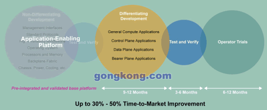摩托羅拉將這種預集成并驗證的基礎平臺稱之為面向應用的平臺,采用這個方式可以極大的加快進入市場的速度,使TEM專注于開發(fā)自己產(chǎn)品的差異化功能與內(nèi)容。基于標準的平臺同時具有豐富的核心能力,從硬件,OS到高可用中間件與管理接口,它不是為單一應用而設計,而是為廣闊市場準備的通用平臺。