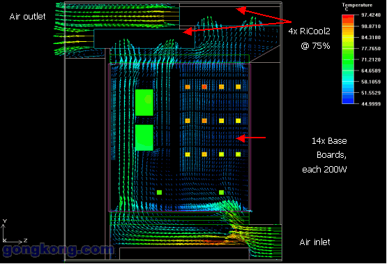 根據(jù)13U ATCA Shelf,威圖公司做了熱量以及風(fēng)量的模擬分析: